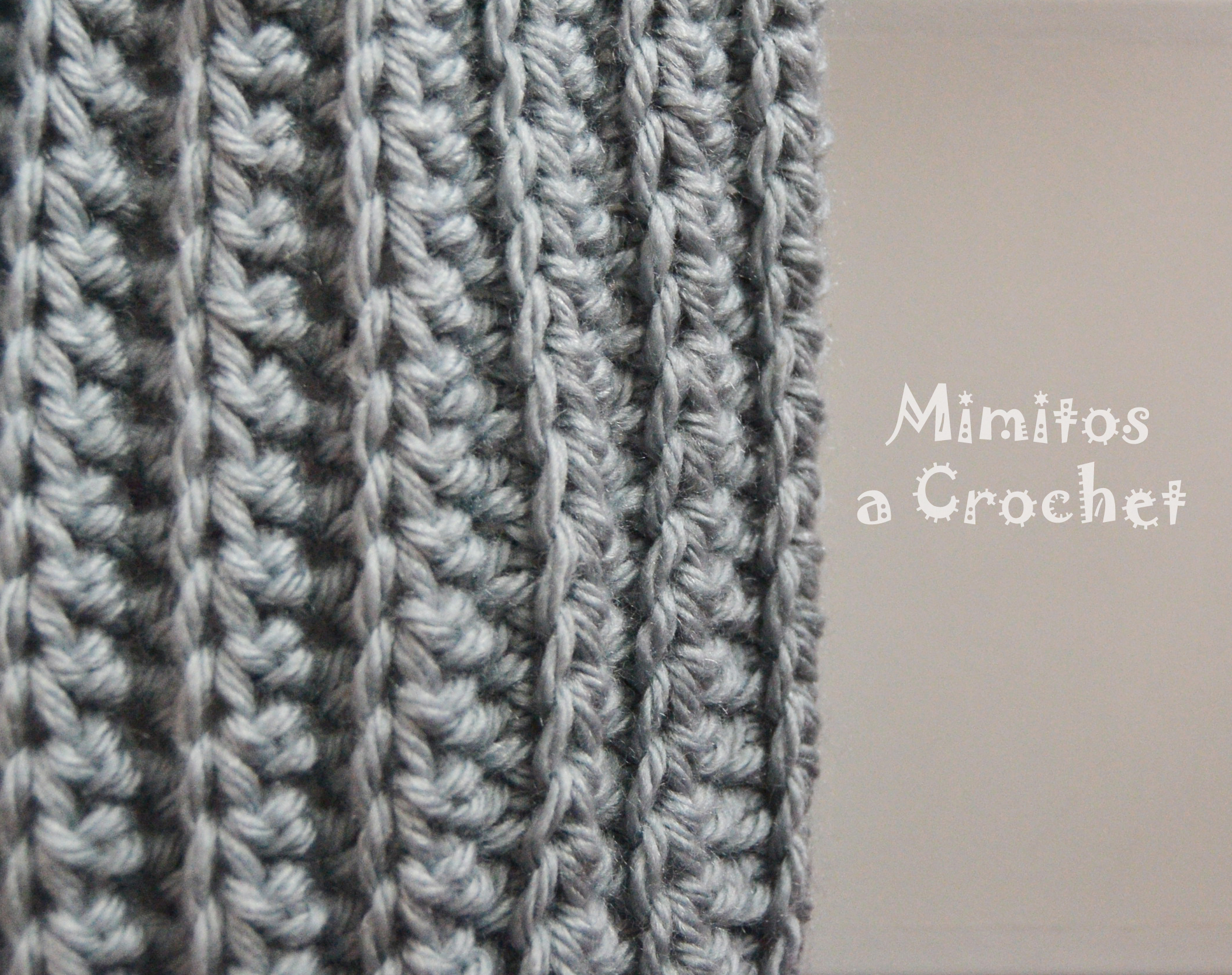 Cuello gris punto elástico VIIEl punto que he utilizado es la media vareta tomando sólo el bucle de atrás. Este pequeño detalle es lo que hace que el punto tenga este efecto de «punto elástico».