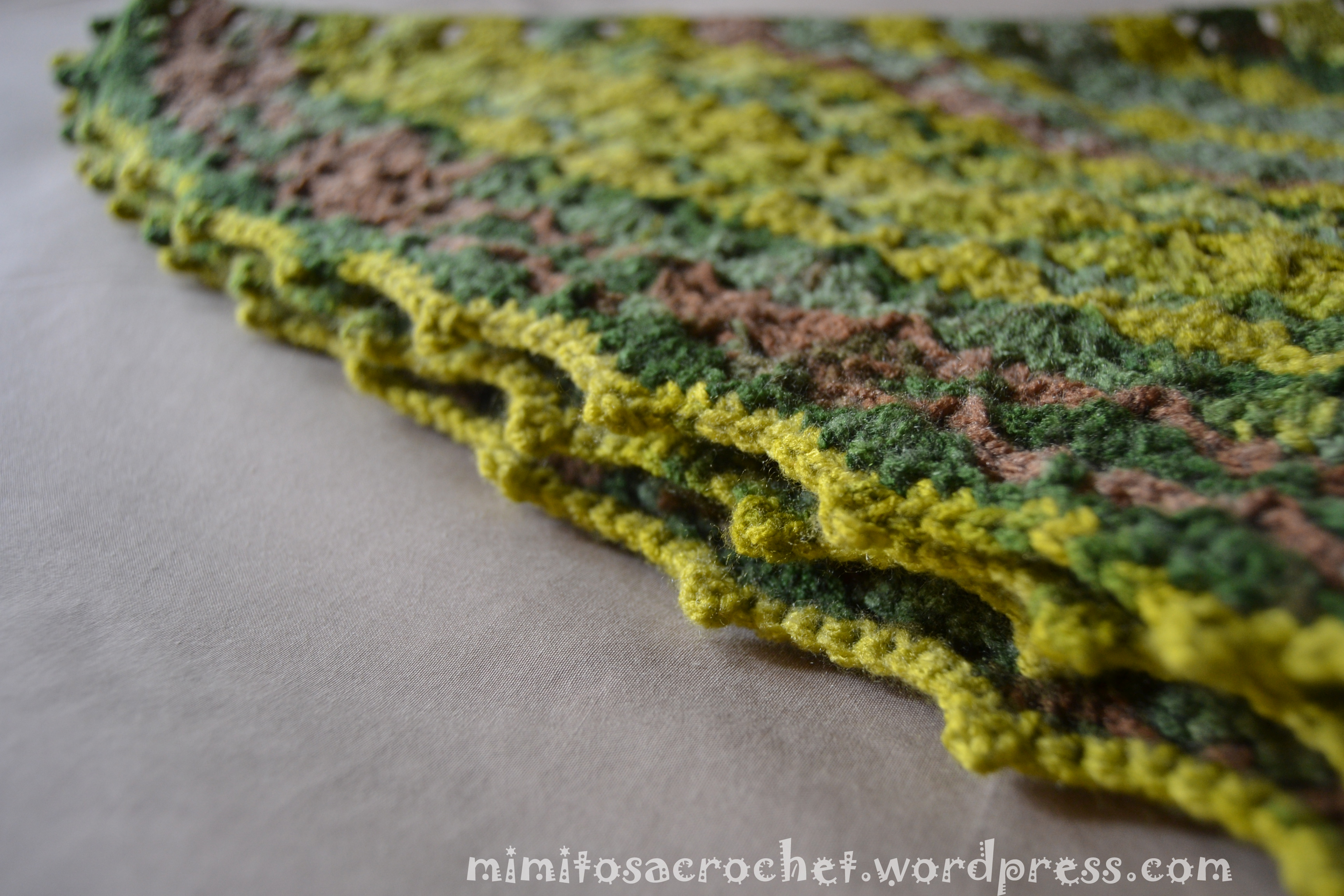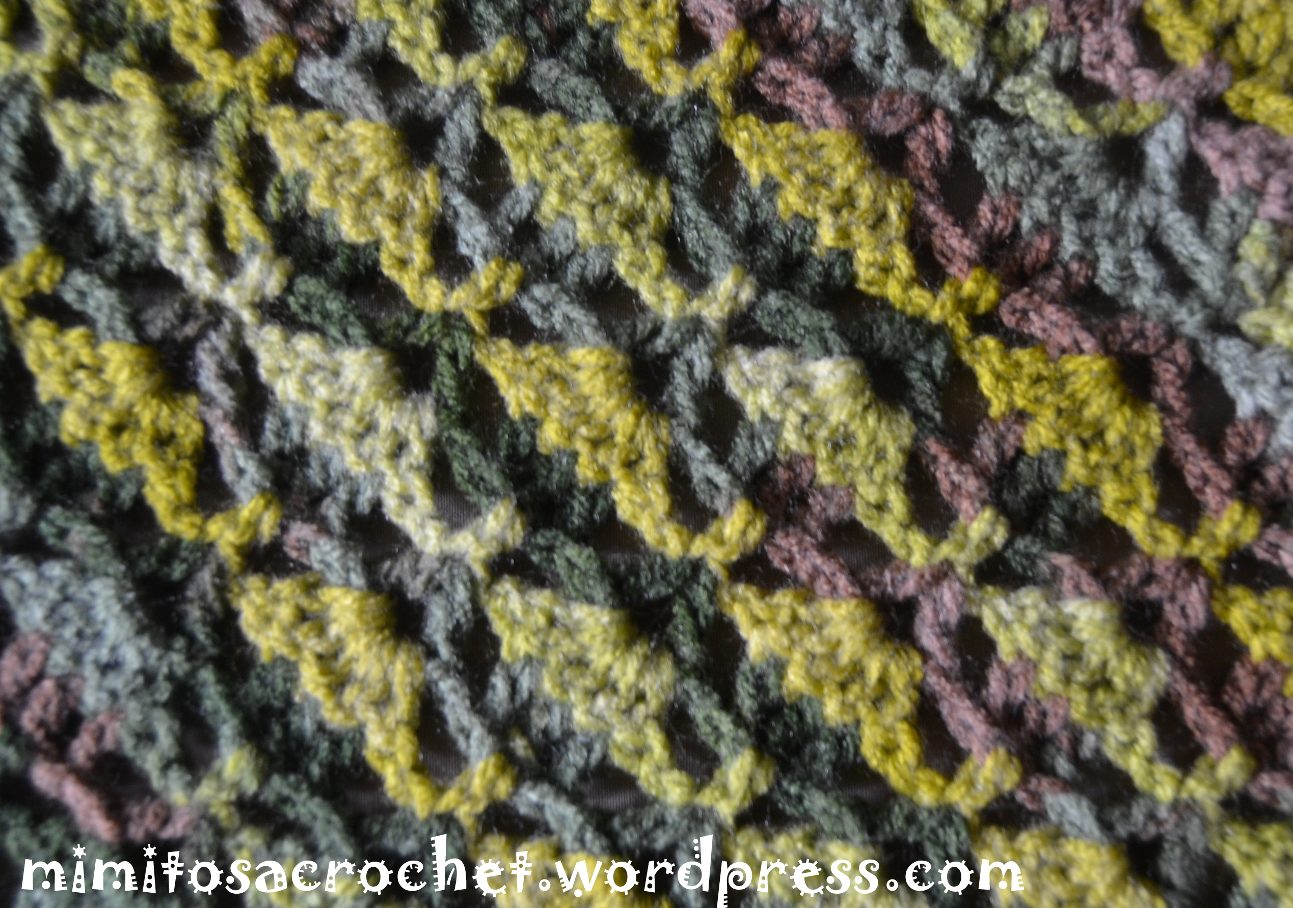 Está realizado con el punto granny o afgano que ya hemos explicado en post anteriores (para verlo, pulsa aquí), pero esta vez se ha tejido de modo triangular, siguiendo este patrón, conseguido en el blog adrianaemilce22gmailcom.blogspot.com.ar: