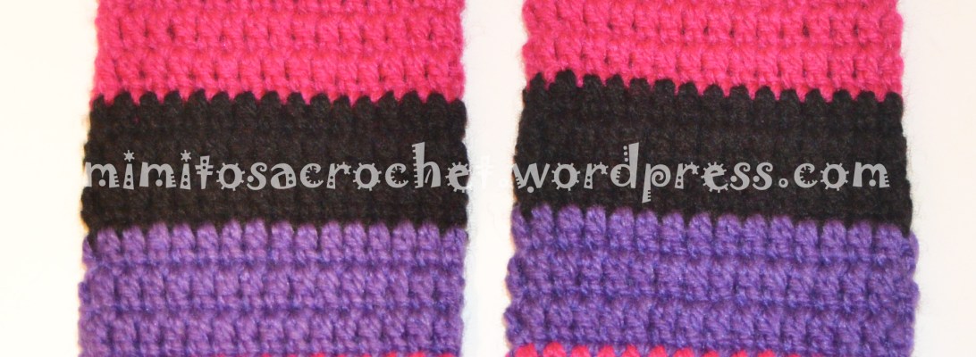Después de probar los calentadores que publicamos hace poquito, se me ocurrió la idea de tejerlos a varios colores, y entonces me surgió la idea de tejerlos en sentido circular, para que quedaran los colores en sentido horizontal, y no en vertical, como quedarían si los tejiera del modo publicado anteriormente.
